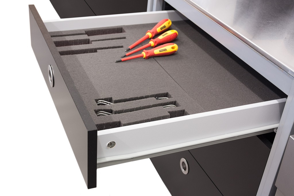 eine Rasterschaumstoff-Matte als Shadowboard im Schubfach